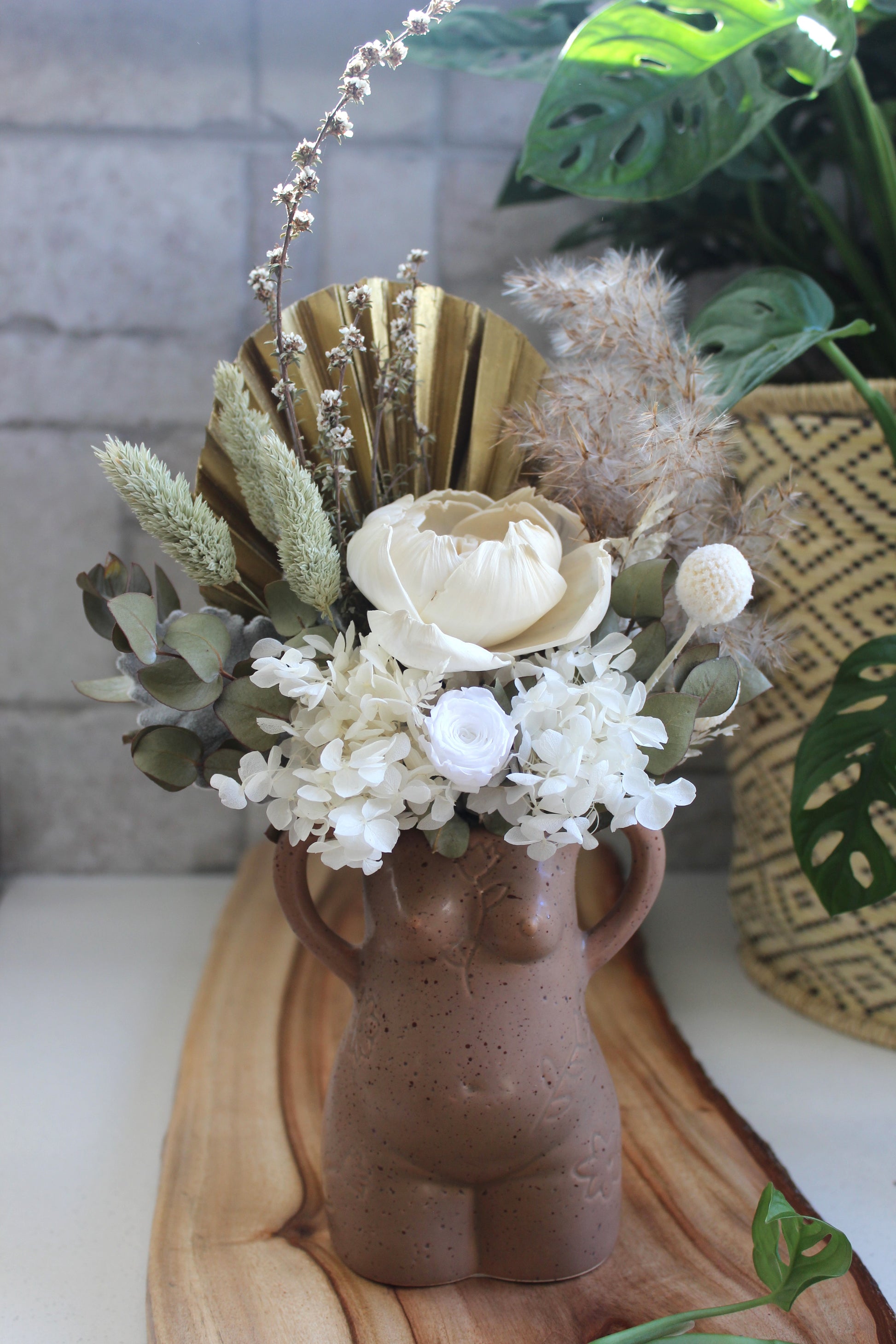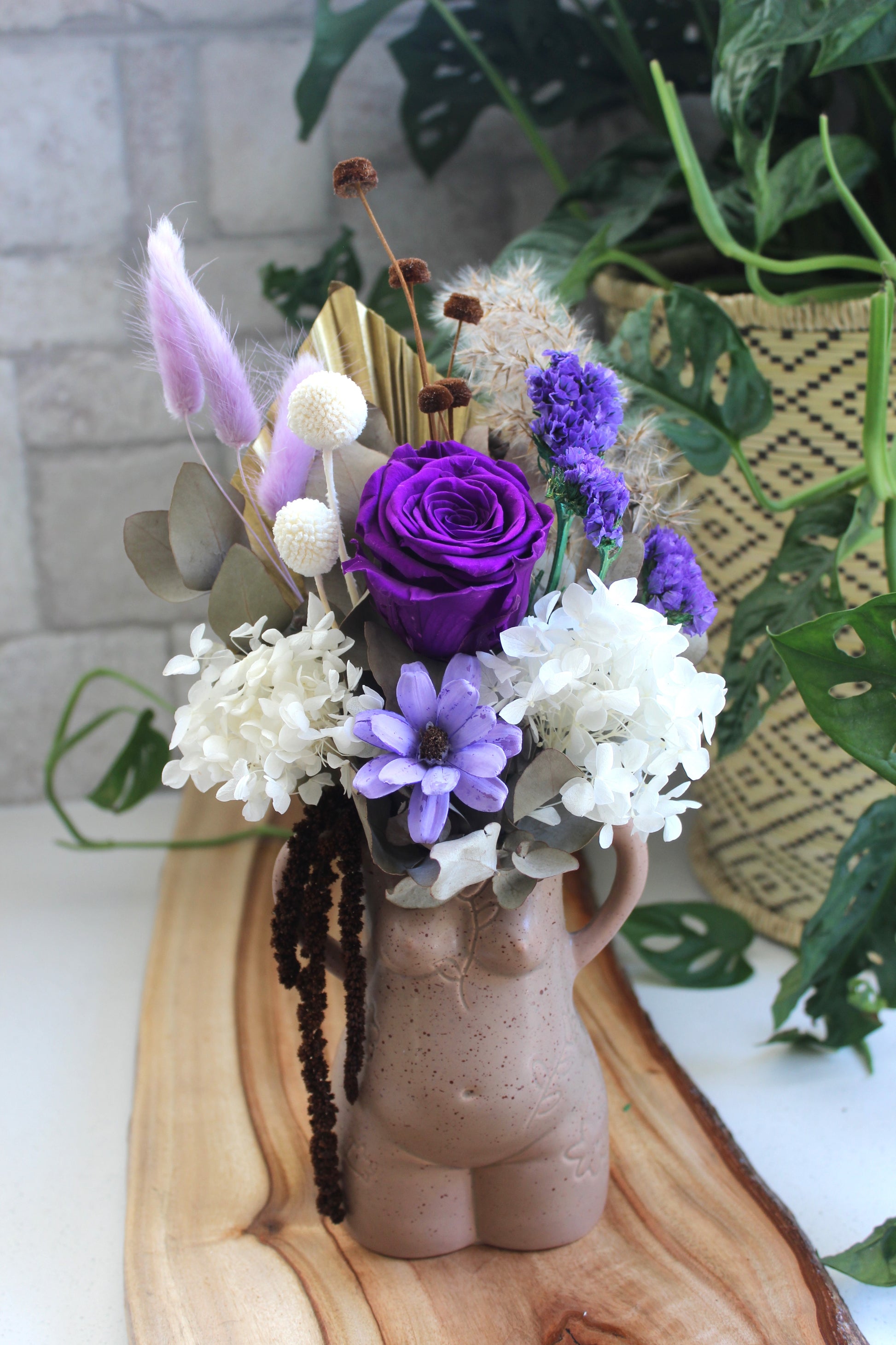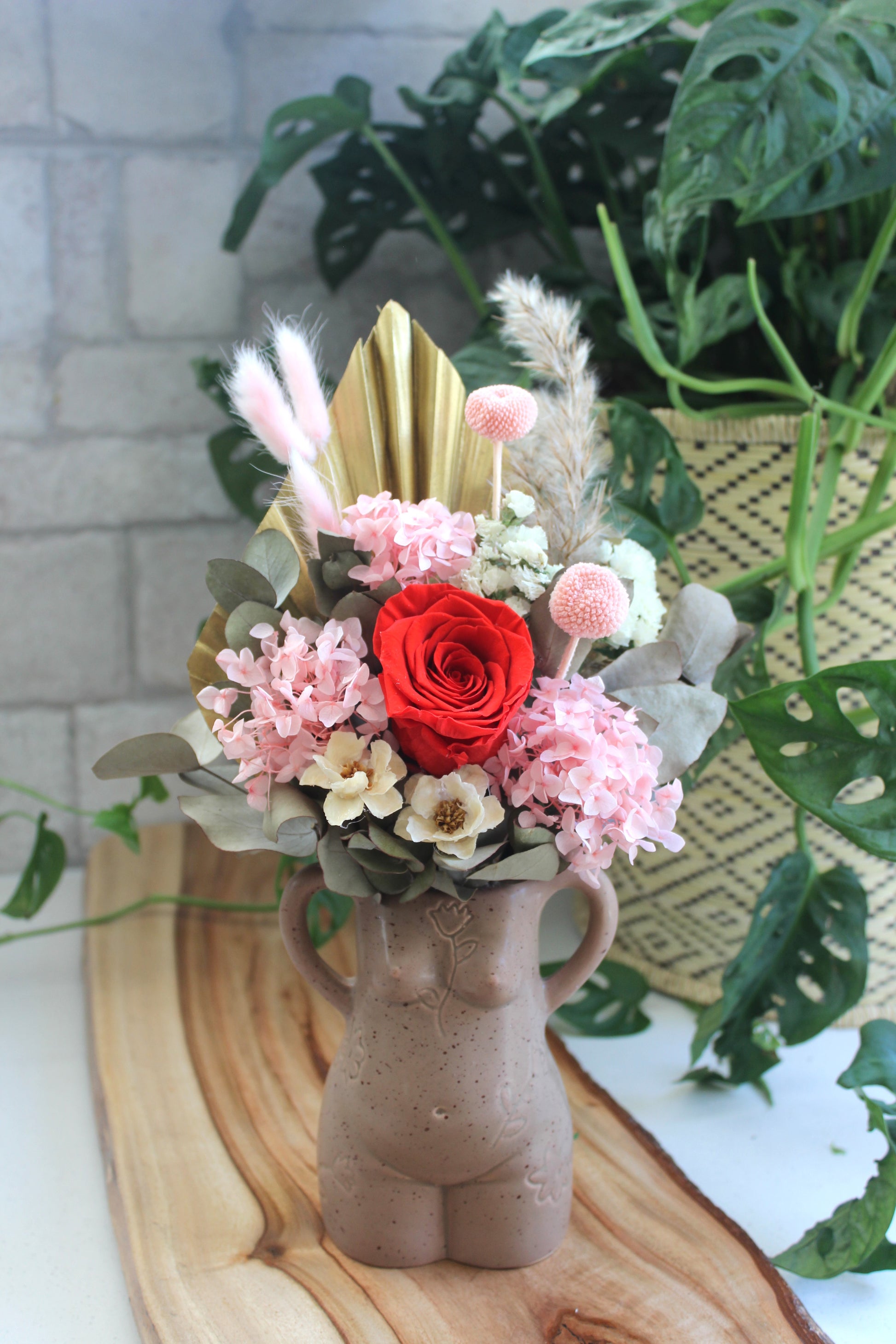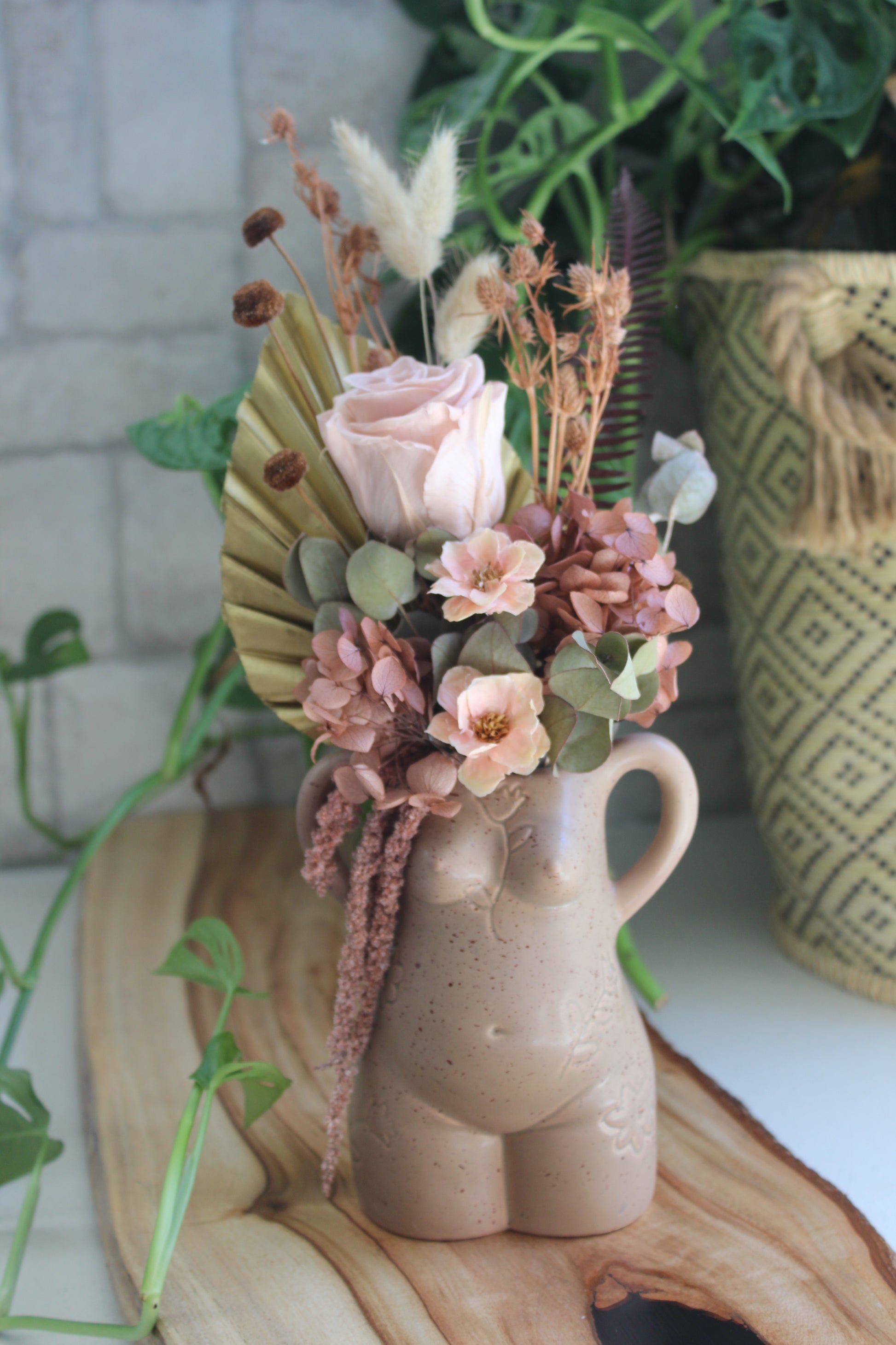 Kora is inspired by all things feminine, she might be small but everyone in the room turns to admire her beauty. Dried and preserved Flowers. As each piece is handcrafted slight variations will be present.