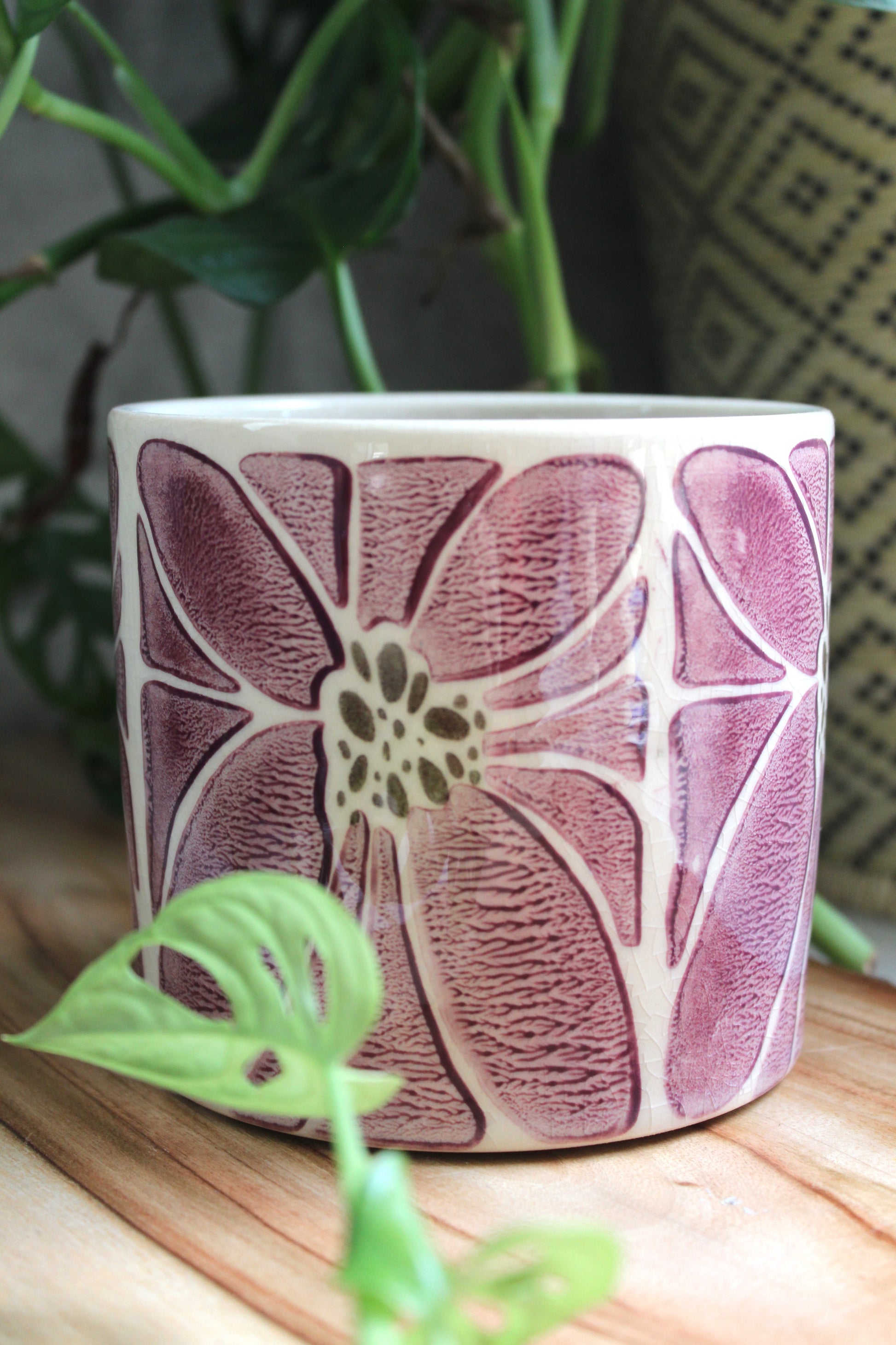 Bring a splash of retro charm to your space with this purple flower pot. Its vibrant hue and nostalgic design make it perfect for brightening up any room while giving your plants a stylish home. Easy to pair with your favourite blooms, it's a playful way to add personality and colour to your décor.