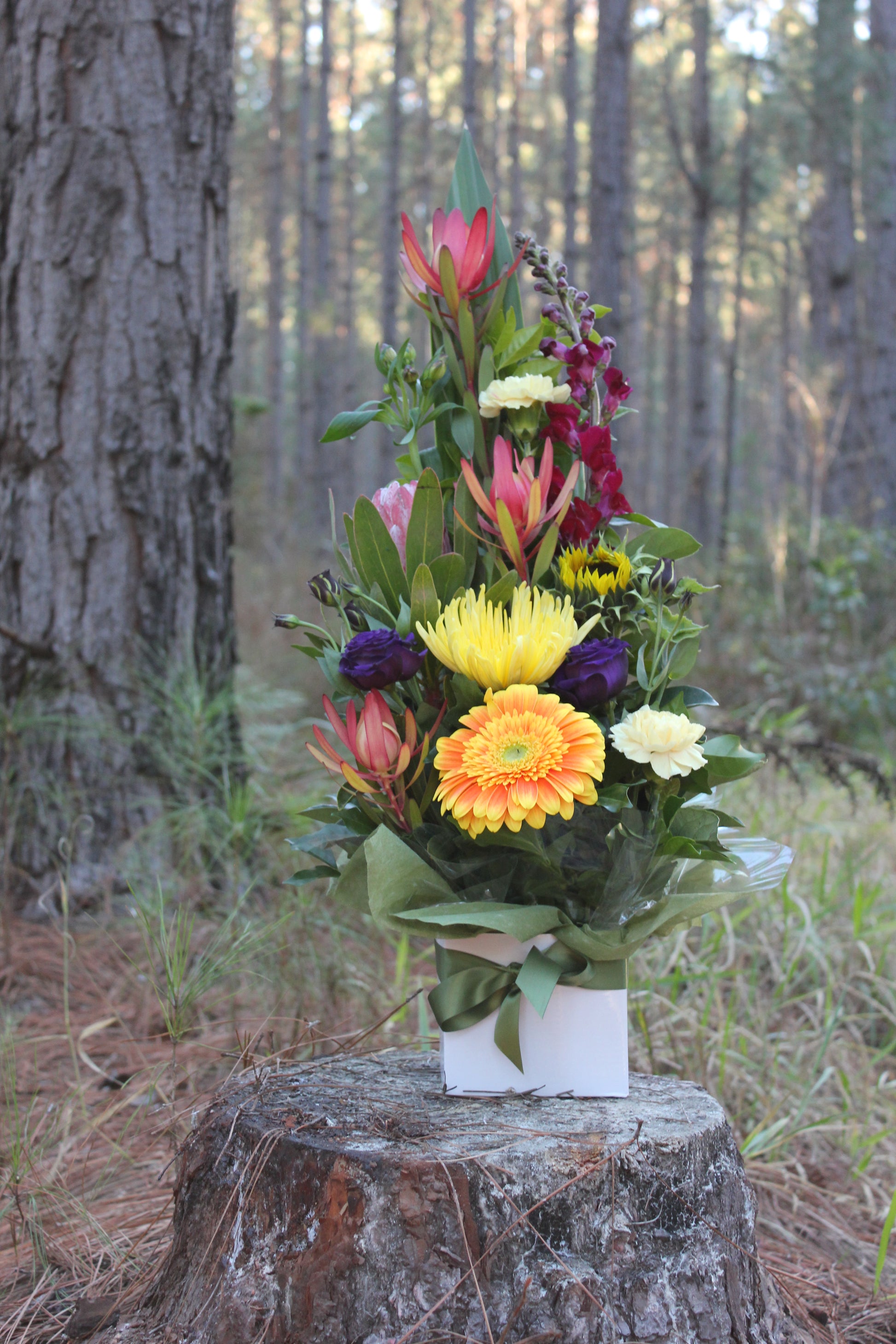 Pictures are examples of seasonal Arrangement, what you receive will be subject to seasonal availability. If you have requests for favourite colours- please let me know in the notes or call & I will endeavour to do my best to accommodate.